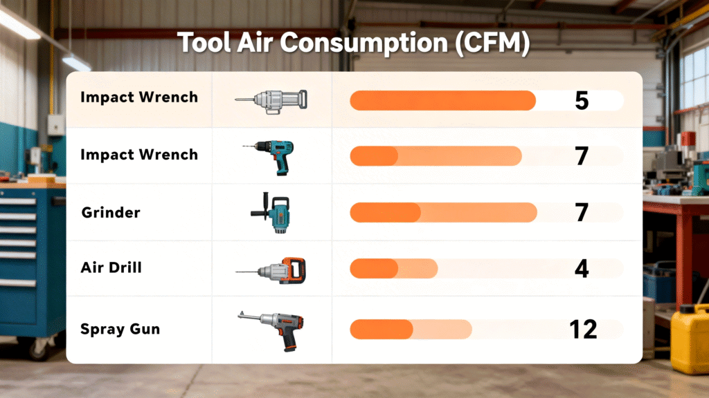 To calculate the required CFM, consider the total number of tools operating at the same time and their individual airflow requirements. Choosing a compressor with too little airflow will result in suboptimal performance, while choosing one with excessive airflow will lead to wasted energy and unnecessary operating costs.